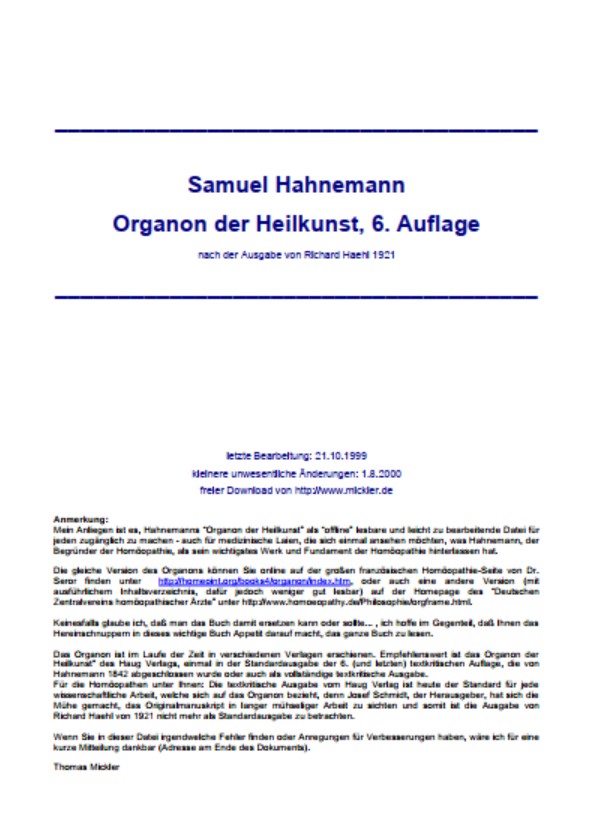 This is, to my knowledge, the only English translation of the first edition of the Organon. There are many issues - Wheeler left out footnotes he didn't believe were valuable, among other issues. However, this remains an important work to see for ourselves Hahnemann's progression of thinking, from this first edition, through to his sixth edition of the Organon.